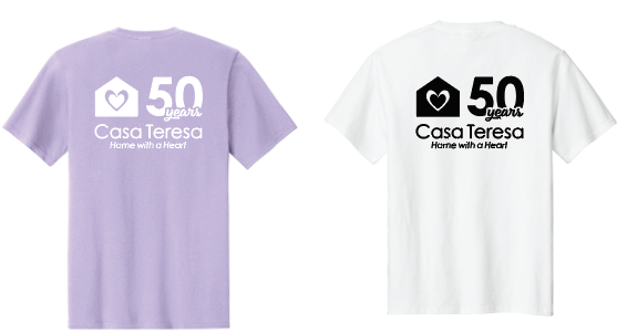 In the context of the 50th Anniversary and the collaboration with Kustom Imprints, these lavender t-shirts are much more than just promotional gear; they are “mission-wear” designed to communicate specific values of the Casa Teresa legacy.