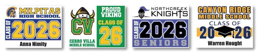 Commemorate your final year with custom graduation yard signs 2026, banners & window decals.
