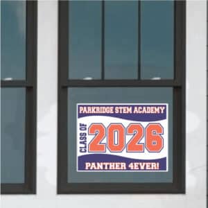 Commemorate your final year with custom graduation yard signs 2026, banners & window decals.