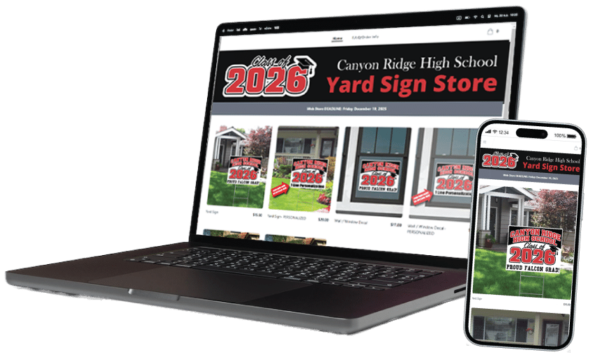 Sell these Class of 2026 signs through our Web Stores, and your school can earn 25% for each sign sold.