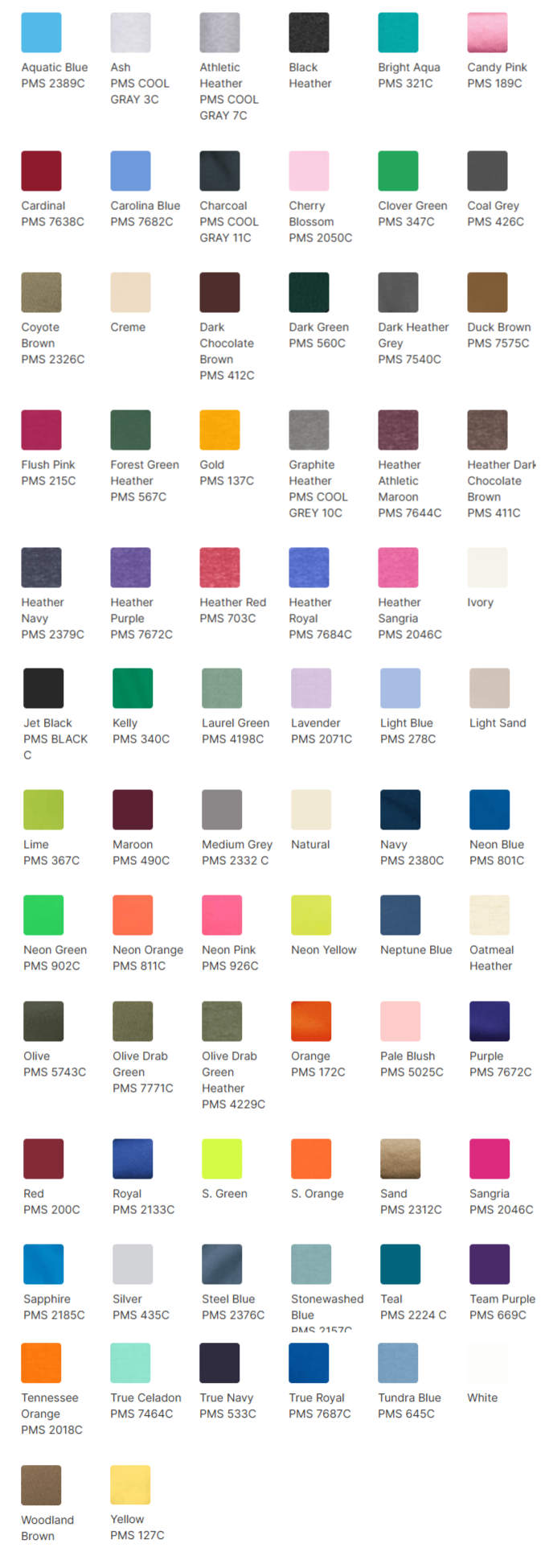 Youth Sizes: XS – XL / Adult Sizes: SM – 6XL
