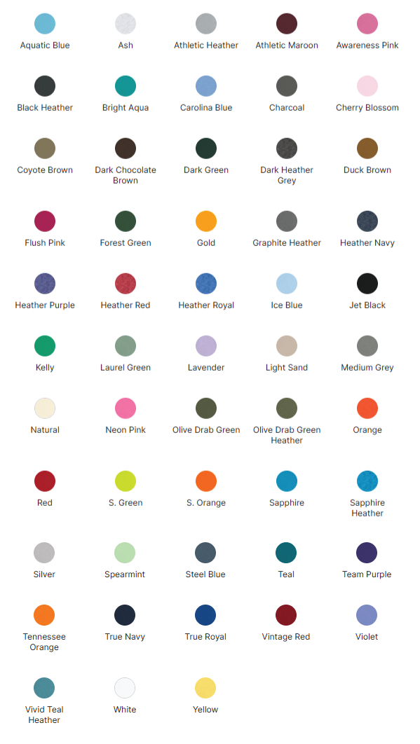 Features: 4.5-ounce 100% ring spun cotton, 30 singles