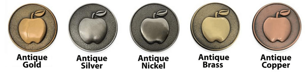 Die-struck metal or stamped metal pins that are finished with a variety of plating option. (See options below) Pins come with a military clutch backing and are individually polybagged.